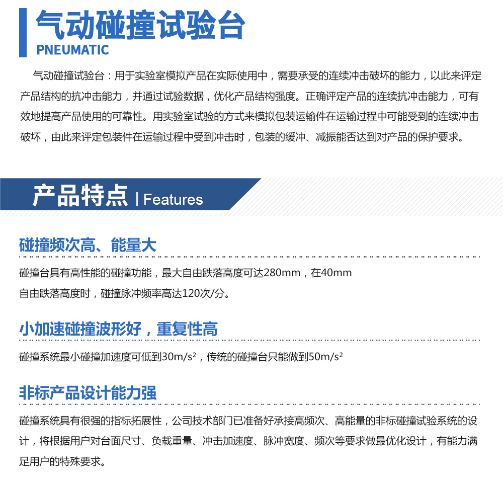 產(chǎn)品型號:JQQ-100 品牌:劍 喬 用途:氣動碰撞試驗臺:用于實驗室模擬產(chǎn)品在實際使用中,需要承受的連續(xù)沖擊破壞的能力,以此來評定產(chǎn)品結(jié)構(gòu)的抗沖擊能力,并通過試驗數(shù)據(jù),優(yōu)化產(chǎn)品結(jié)構(gòu)強度。正確評定產(chǎn)品的連續(xù)咨詢熱線:13829135130